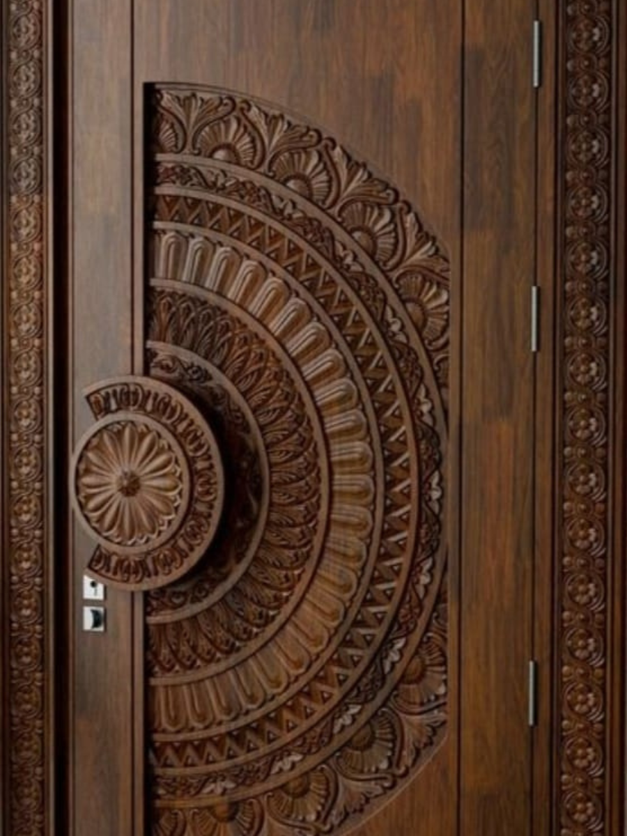Grand wooden entrances crafted for durability, security, and timeless elegance. Perfect for villas, apartments, and offices.